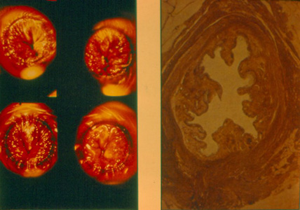 Slide Museum: Haemorrhoids (piles) & Proctology: 4 proctoscopic views of Haemorrhoids and anal cushions seen on microscopy
