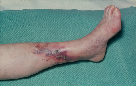 Slide Museum: Skin & Nail Conditions: Varicose (gravitational) eczema left shin caused by varicose veins